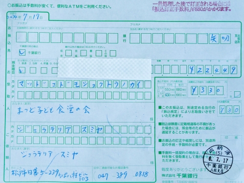 10周年感謝Dayに来店、ありがとうございます。 2024.07.17 Tweet 7月7日、10周年感謝Dayにご来店、ありがとうございます。当日、皆様の寄付していただいた金額は22449円にもなりました。すべて「まつど子ども食堂の会」さんに寄付を致しました。ありがとうございます。これからもよろしくお願い致します。 Category:当店からのお知らせ Author:sumi-ya /blog/blog_comments/captcha/10542270 /blog/blog_comments/get_token